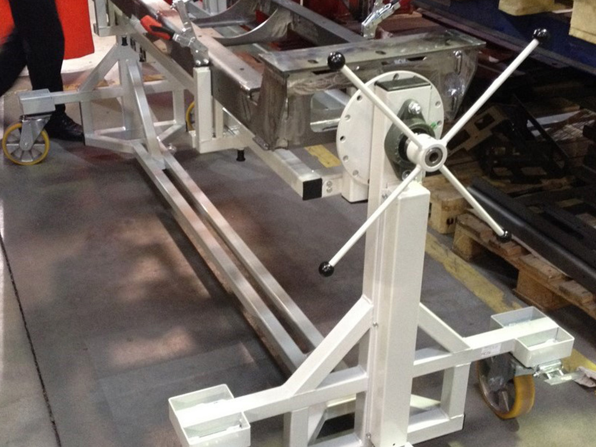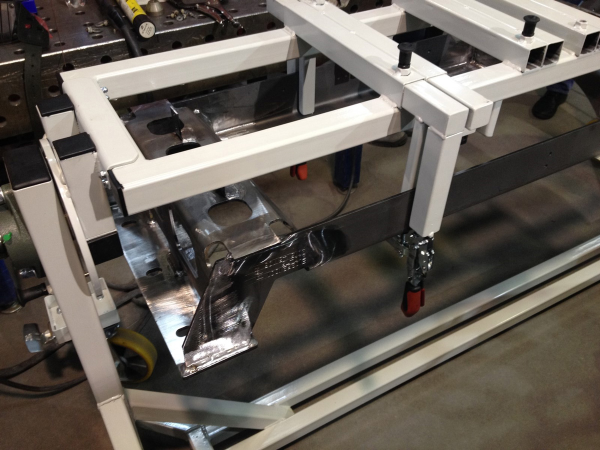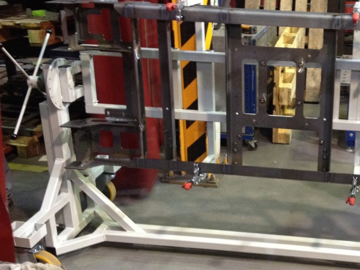 Minden munkaállomáshoz külön, kerekeken gördíthető hegesztőállványokat terveztünk és gyártottunk, amelyek: