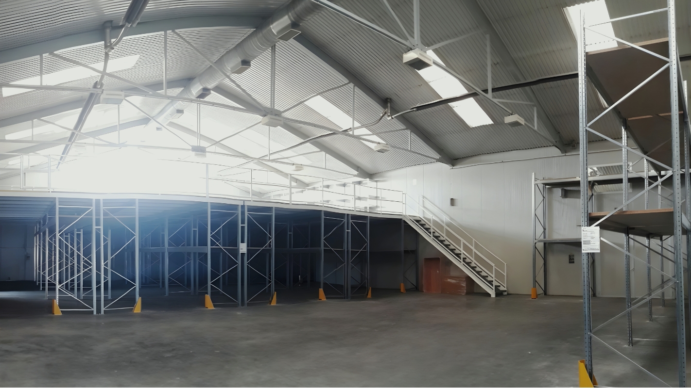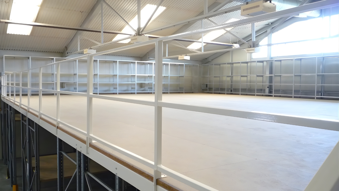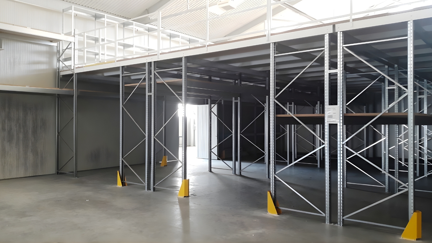 - A rendelkezésre álló hely maximális kihasználása érdeklében telepítettünk még egy 240 m²-es acélgalériát is, egyedi lépcsővel és feladóhellyel, így a galéria alatti térben is elhelyezhetővé váltak újabb állványok.